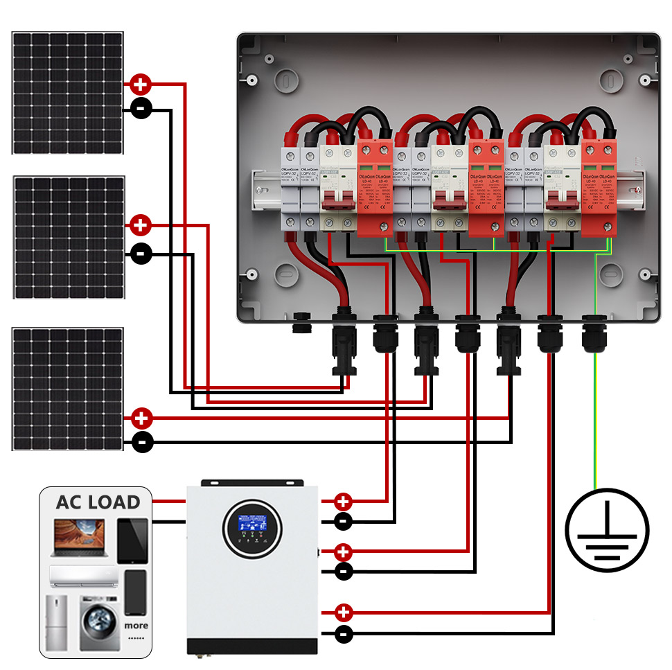 PVコンバイナーボックス3 in 3 Out DC500V/600V/800Vは、インバーターとソーラーパネルをダメージから効果的に保護し、火災から送信します。